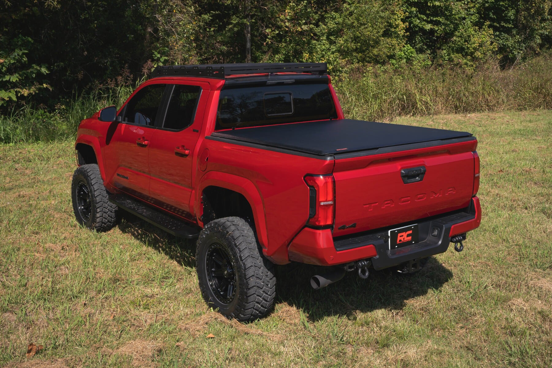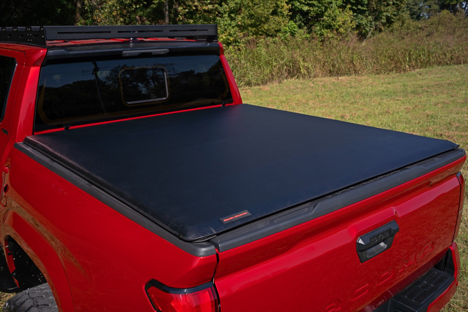 Rough Country Soft Roll Up Bed Cover for Gen 4 Toyota Tacoma with 5' Bed is designed to provide a simple and efficient way to protect your cargo while maintaining quick access to the truck bed whenever you need it. The roll-up design allows the cover to be easily opened and secured near the cab, making it a practical option for drivers who frequently load and unload gear.