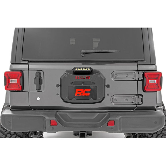 Lighting Options: In addition to retaining the factory 3rd brake light, the Rough Country Spare Tire Delete Kit also includes mounts for either 6in or 8in LED light bars. Rough Country offers kits that include a single row 8in LED light bar in either their Chrome or Black series.