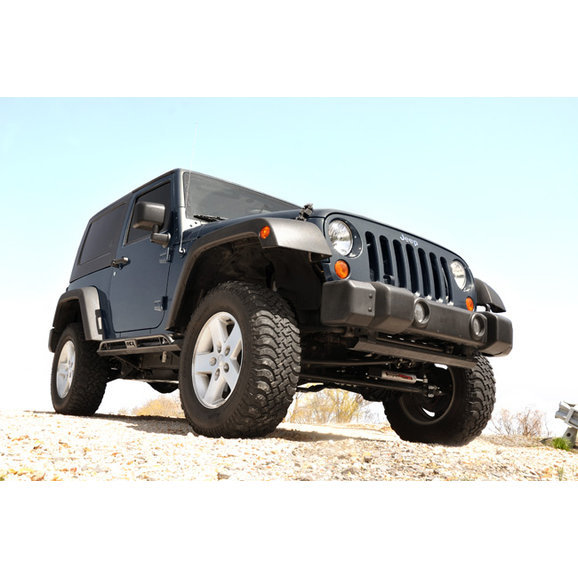 Give your Wrangler JK an aggressive look with the Rough Country Stubby Bumper End Cap Kit. These heavy-duty end caps improve both your Jeep’s appearance and off-road capability. By removing 11-1/2” from each side of your bumper, Rough Country end caps transform a factory bumper into a stubby bumper.