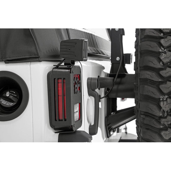 Light Mount: In addition to protecting your tail lights from branches and rocks, the Rough Country Tail Light Covers provide a mounting point for standard auxiliary lighting. A set of cube lights can greatly improve visibility when backing up or towing.