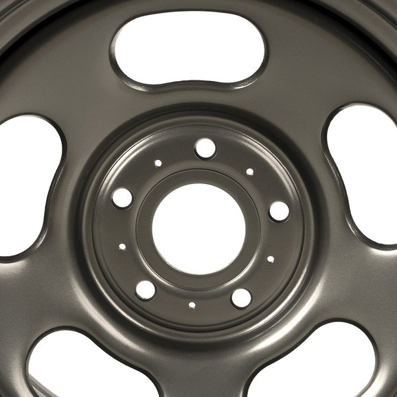 The hub-centric 17x9 Trail Runner Classic Steel Wheels in Gunmetal from Rugged Ridge were designed as an upgrade from ordinary steel wheels. Featuring a 5x5 bolt pattern, five retro-style kidney shaped holes and a durable gunmetal finish, these wheels are tough enough to withstand trail duty. True to definition, hub-centric construction ensures the wheel is precisely centered on the axle, minimizing stress on wheel studs and eliminating the added road vibration common with non-hub-centric designs. All Rugged Ridge wheels are engineered, tested and certified to meet and exceed the strenuous SAE J2530 standards for wheel strength and durability. Does not include a center cap.