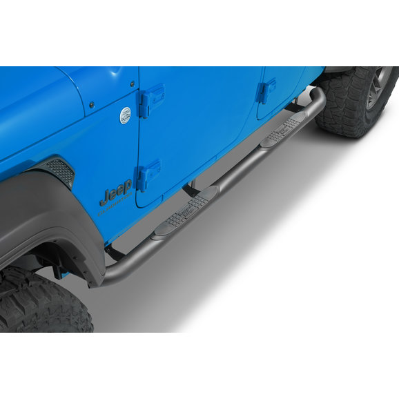Add a touch of style and convenience to your Jeep Gladiator JT with these 3-Inch Round Fine Textured Side Steps from Rugged Ridge. Featuring steel tubing with .07-inch thick wall, e-coated, and finished with a fine-textured black powdercoat for rust-resistance. Includes high-strength mounting brackets designed for years of flex-free usage. Step pads are UV-treated and provide superior traction in most weather conditions. These side-steps hold up to 300-lbs. Not a universal design - These are manufactured specifically for your Gladiator!