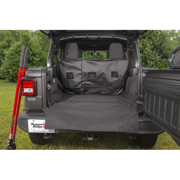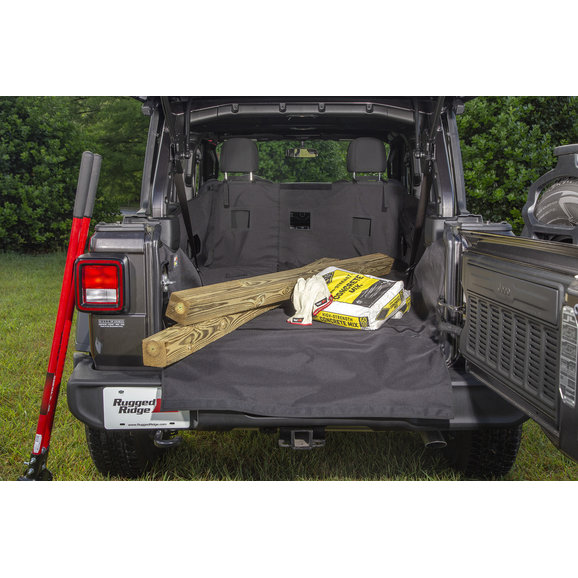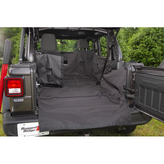 Protect the carpet and trim in your Jeep Wrangler JL Unlimited with the Rugged Ridge C3 Rear Cargo Cover. Giving your Jeep optimal cargo protection whether you are loading building materials, camping and trail gear, Pets, firewood, or Christmas trees. Designed specifically for your 4 door JL with openings where necessary. Also, providing opening flaps for the side doors giving you ease of loading at all doors. Made from a water resistant material with a folding tailgate flap keeping water and debris from the tailgate door gap. A full coverage cargo cover even covering the rear seat when folded down. Keep your Jeep in pristine condition with this versatile cover.