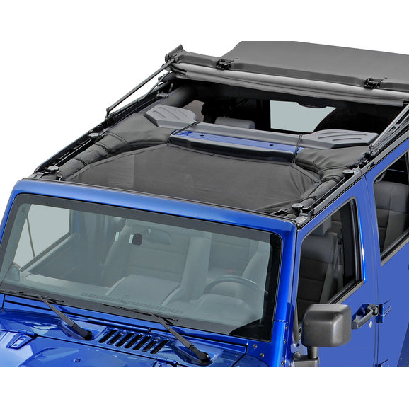 Eclipse Sun Shade by Rugged Ridge is a mesh shade that installs in between the front portion of a JK sport bar providing an open air experience while protecting passengers from the sun. Works with soft tops & hard tops while allowing access to the top clamps without uninstalling the shade. Installs quickly and easily with a simple bungee ball installation and it comes with a small mesh carrying bag for storage when not in use.