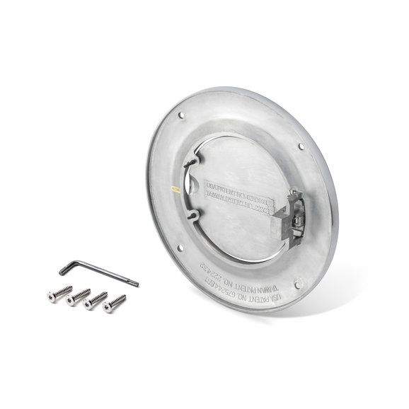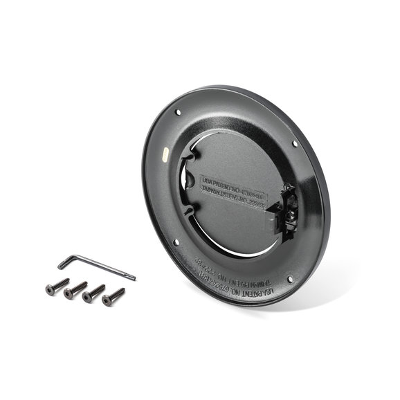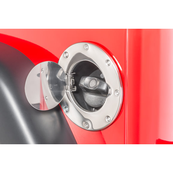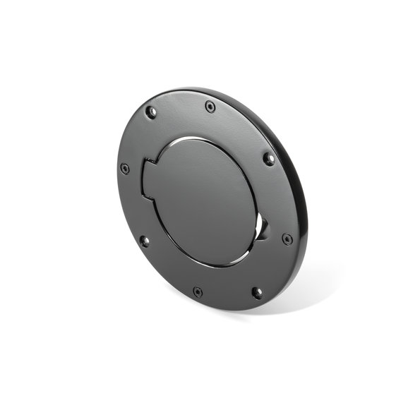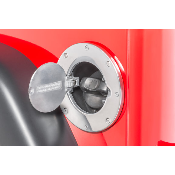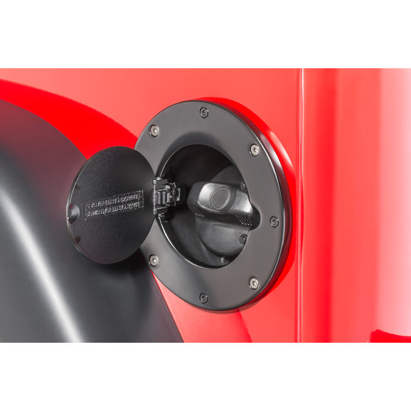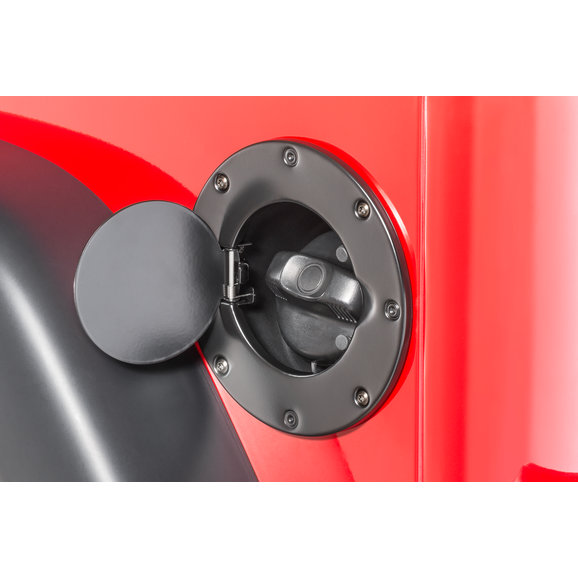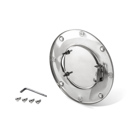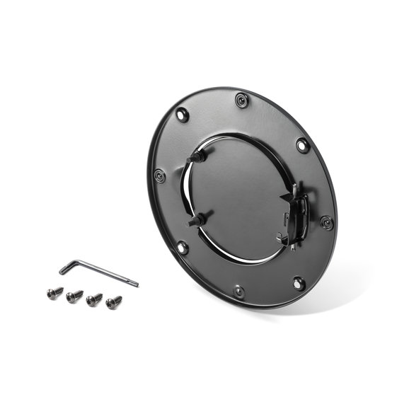 Gas hatch cover features four simulated bolts and four actual bolts that fit the original holes.