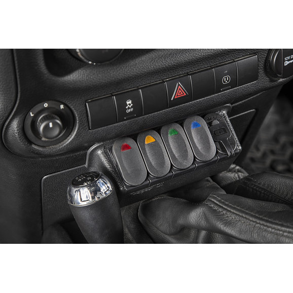 The Rugged Ridge Lower Switch Panel allows for practical & convenient installation of electrical switches in 2011-2017 Jeep Wrangler models, regardless of transmission type (Manual or Automatic). This switch panel replaces the lower center dash panel with an injection-molded panel made of an impact-resistant thermoplastic, matching the color and grain of the factory dash for a finished look. Each Lower Switch Panel Kit includes FOUR 2-position rocker switches (Amber, Green, Red and Blue) and a nifty Dual USB Charging Port to maintain those essential electronic devices. Switches are ergonomically positioned for easy access and effortless operation in your JK, while maintaining the factory correct appearance.