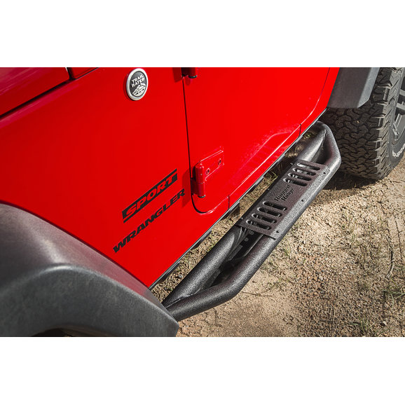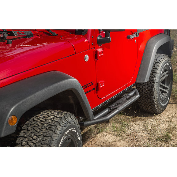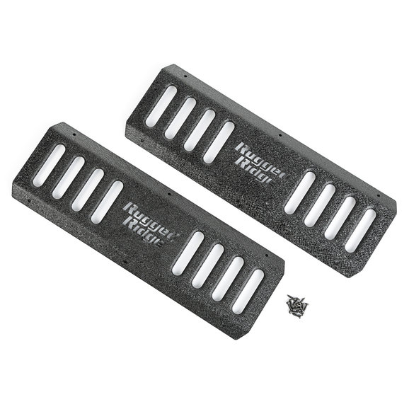 If you have a pair of RRC Side Armor Guards then you need these Side Armor Step Plates. Made of stamped steel then black powder-coated, these step plates give you a solid platform while getting in & out of your Jeep. With stylish recessed vents and the cutout Rugged Ridge logo, these step plates are as good looking as they are functional. Sold as a set of 2. Designed to fit 11504.21.