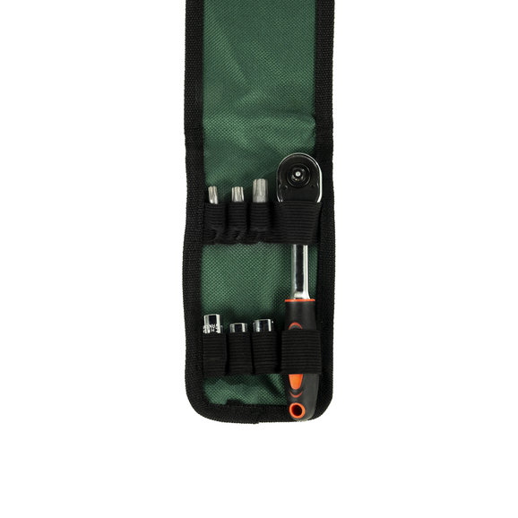 The Rugged Ridge Torx Tool Set offers the necessary tools to easily remove your hardtop and doors on your Jeep Wrangler JK. Offered with a convenient storage pouch made from a durable nylon material. Easily store this kit on you center console or glovebox for quick access. Includes a easy to use ratchet, 3 sockets (6mm, 8mm, and 10mm), and 3 Torx bits (T30, T40 and T50). This Tool kit is a replica of the factory original part # 82214166AB.