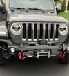 With the Venator Front Bumper from Rugged Ridge, you are giving your Wrangler JL or Gladiator JT a powerful looking bumper that not only looks cool but is trail-ready as well. This is not your typical bumper with its strong contours and facets along with extreme arches that compliment your Jeep in every way. The octagonal pockets not only look cool but they also accept your factory fog lights. Available in full width or stubby and with or without grille guard.