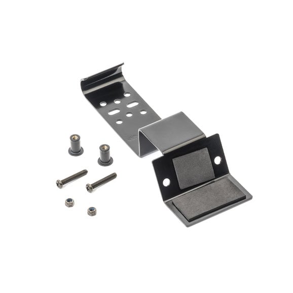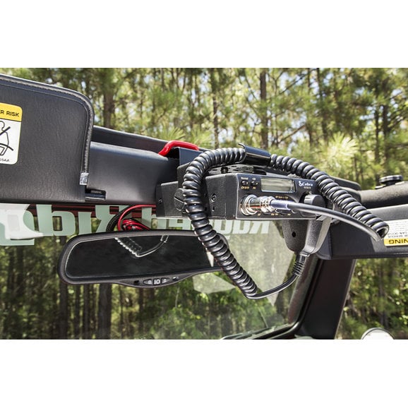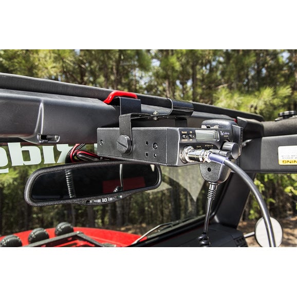 A CB Radio is one of the most useful tools to have when navigating the backwoods trail, far from cellphone coverage. Unfortunately, banging your knee on a dash mounted CB will have you rethinking your decision. Rugged Ridge developed this CB mount with real-world ergonomics in mind, positioning the radio unit directly above the rearview mirror for ease of access and visibility. No longer will you be reaching across the cab to change the channels or locate a stray microphone. This CB mount bracket installs easily and has a universal mounting pattern to work with most manufacturers hanging brackets. Black zinc-coated hardware provides a factory-finished look.