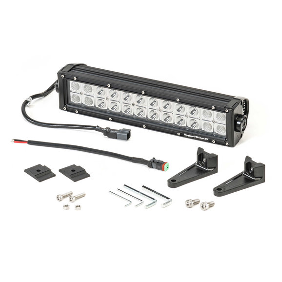 Optimize your off-roading adventure with the best lighting solutions on the market. This windshield LED light bar is constructed from sturdy 2-inch welded steel tubing and is secured to the vehicle using specially engineered A-pillar brackets that seamlessly replace the OE windshield brackets. Unlike other aftermarket bulky and conspicuous designs, Rugged Ridge designed its tubing to integrate unobtrusively into the vehicle body, giving a sleek and seamless look. The contour hugging light bar frames the windshield, accommodating three Rugged Ridge 13.5-inch LED Light Bars with low profile tabs; providing flexibility and additional illumination on the trail for nighttime off-roading. The light bar incorporates a special wind deflector to dramatically reduce whistling and buffeting of your soft top. No drilling required for installation. LED lighting from Rugged Ridge was engineered and tested to optimize your adventure by illuminating the area around you. These LED lights are vibration, corrosion, and submersion tested to meet and exceed standards. This bright 72 watt waterproof 13.5-inch LED light bar has both a flood and driving beam pattern that puts out 6072 lumens of light. The CREE diodes have a 30,000 hour life, providing a stable light output for extra time on the trails.