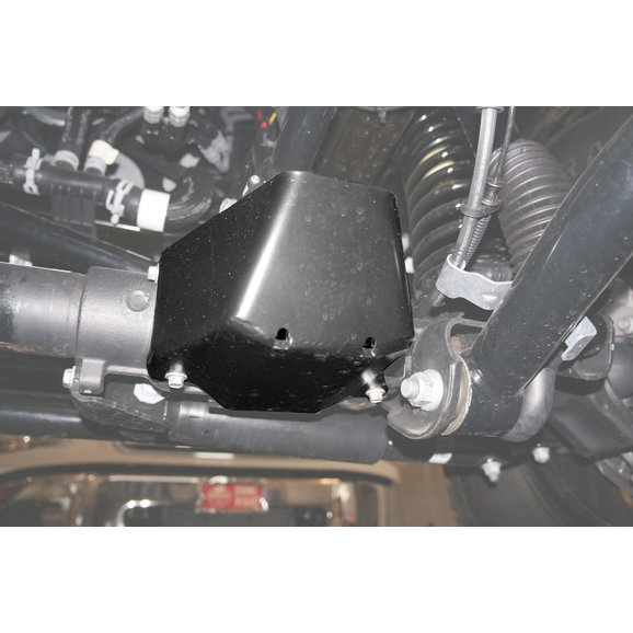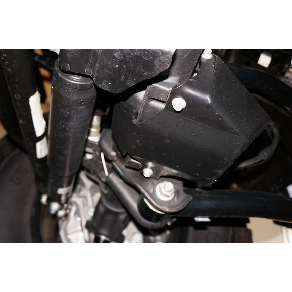 Rusty's Center Axle Disconnect (CAD) Skid Plate for Jeep Wrangler JL is a black powder coated skid plate that is manufactured to help protect the Center Axle Disconnect of your Jeep Wrangler JL from the abuse that is incurred when hitting rocks and obstacles on the trail. The factory does provide a thin stamped skid plate but it is inadequate for the type of protection needed for lots of trail punishment. Rusty's CAD Skid Plate is constructed of 1/4" thick laser-cut steel that is then CNC formed for a precise fitment making installation a simple bolt on process. Add strength and reliability to your Jeep JL's Center Axle Disconnect with Rusty's (CAD) Skid Plate.