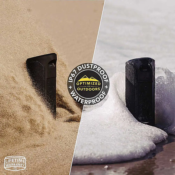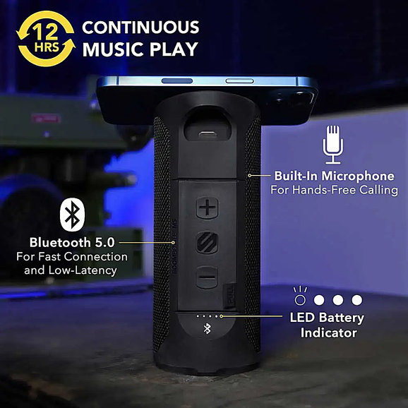 Whether you are on the go, or just need some music to fill the garage or backyard during chore duty, the Scosche BoomBottle MagSafe Compatible Magnetic Wireless Speaker can perfectly fit all your sound requirements. Safely works with iPhone and Android smartphones and includes MagSafe-compatible MagicRing for secure attachment, while Bluetooth 5.0 wireless communication means a fast, low-latency connection to any streaming service. Fits precisely inside bicycle water bottle cage and contains built-in bottle opener. Speaker includes two passive subwoofers and two 10-watt speakers that deliver impressive bass and crisp highs. Unit can also be wirelessly paired with two BoomBottle speakers to provide superior garage or backyard-filling sound quality. IP67 weatherproof-rated to protect against rain, snow, or other moisture. Provides up to 12 hours of playtime. Features three-year warranty.