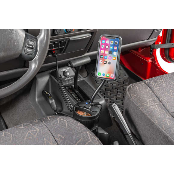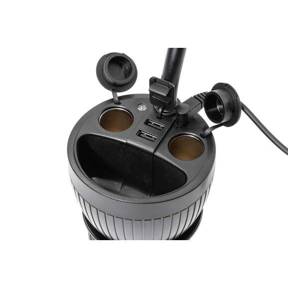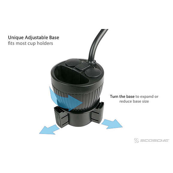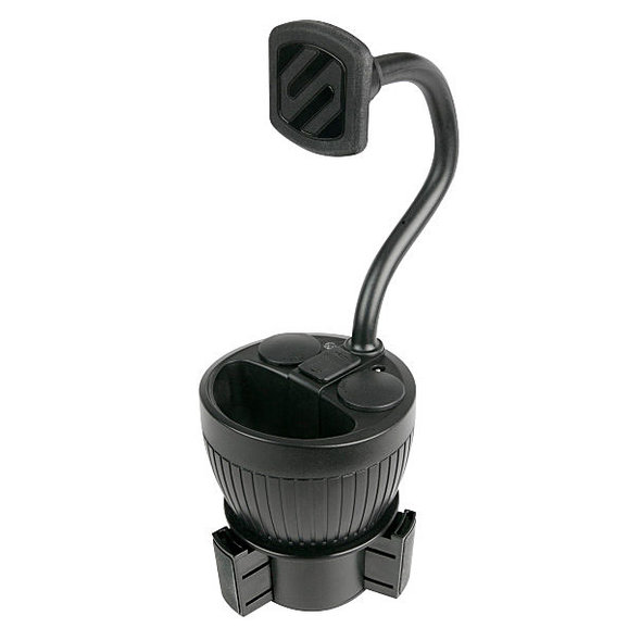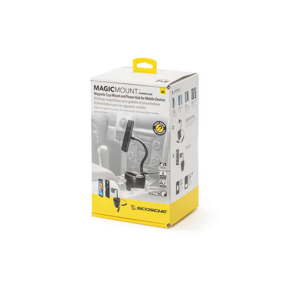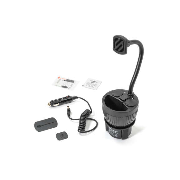 Do you have multiple devices you need to keep charged while out on the trail or long road trips? This is now no problem with the MagicMount PowerHub by Scosche. The PowerHub is the ultimate solution to charging multiple devices at the same time. This easily plugs into any 12v power source and lets you charge up to 4 devices all at once. The entire PowerHub base is adjustable to install quickly into virtually any size cup holders securely. Once plugged into the vehicles power outlet, the builtl in LED indicator will come alive and let you know that it is ready to go. The base features two 12v outlets and 2 USB outlets for many different charging needs. The charging ports are protected by included covers when not in use. The long and adjustable neck can be positioned at any angle you wish for optimal viewing of the device. Mount your portable device with the included MagicPlates, that are made from extremely strong  Rare-Earth neodymium magnets that are 100% mobile device safe and provide a secure grip to your devices.