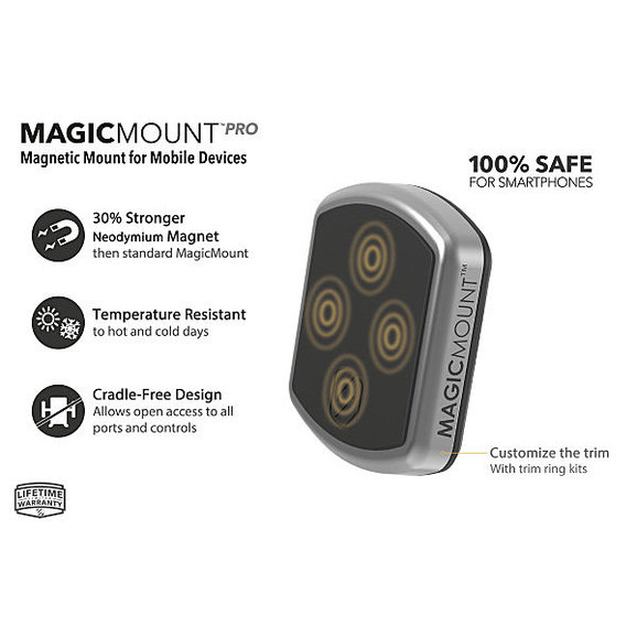 Safe and Secure: Attach your mobile device quickly and at the optimal viewing position with the MagicMount Pro Window/Dash mount. The magnets are 30% stronger than ever before and will keep your device in perfect view at all times, no matter the terrain you are on!