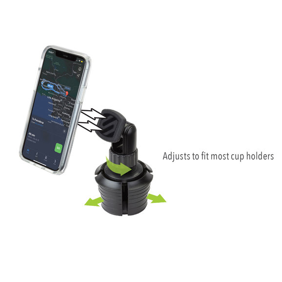 The Scosche QuickGrip Cupholder Phone Mount is the perfect choice for those not wanting a dash or windshield mount for their portable device. The QuickGrip base rotates to be able to adjust and fit any cupholder. The cradle-free magnetic design holds the device securely in place and can be adjusted to find the best viewing angle. The extremely strong neodymium magnets are designed to keep the device secured on any terrain.
