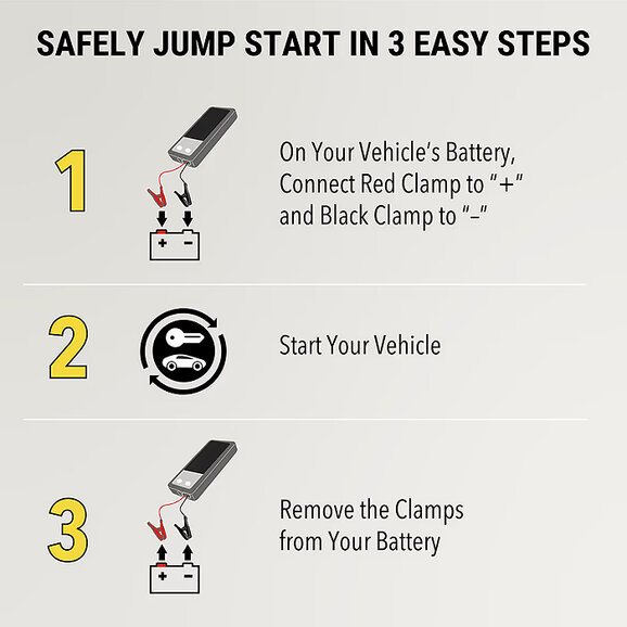 600A Jump Starting Power: Provides sufficient current to start cars, trucks, and SUVs without a second vehicle.