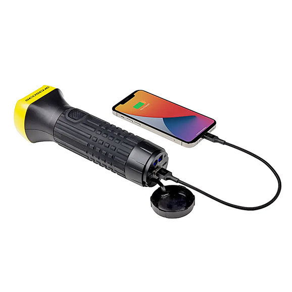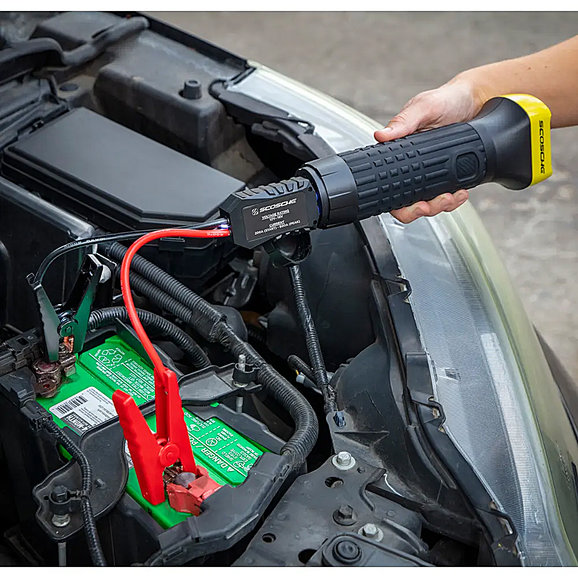 A dead vehicle battery does not make for a good time. Complicate that with an uncharged smartphone and things really do not get much worse. Well, with Scosche's PowerUp 600 Torch with Car Jumper and LED Flashlight, you can quickly get back on the road, as well as charge up your electronic devices, without the hassle of towing or finding someone else with jumper cables. Even at night. This compact unit offers a high-capacity 29.6Wh lithium-polymer battery that provides a powerful 600 amp jump starting current good for most engines up to 5.0L (gas) and 2.0L (diesel), while also providing a USB charging outlet and bright eight-watt LED flashlight. Includes jump starter, flashlight, power bank, charging clamps and cables, a car adapter, charging cable and protective storage case. Features a one-year warranty.