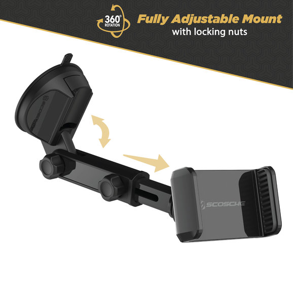 Versatile: The Extendo Telescoping mount can install to the dash, windshield, kitchen counter, or your home office desk easily with the StickGrip suction base. The telescoping arm allows for adjustment in or out to get the best possible viewing angle.