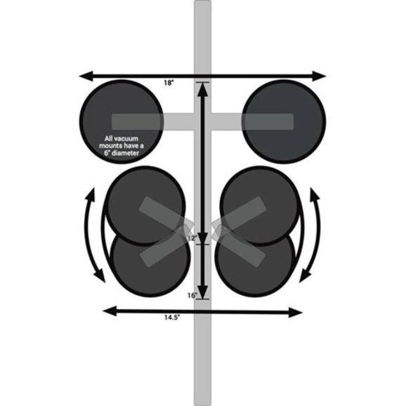 Heavy-Duty Vacuum Cups: Each of the four powerful 210 lb pull-strength rated vacuum cups articulates so the rack makes a solid connection on all your Vehicles' curves.