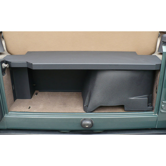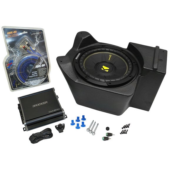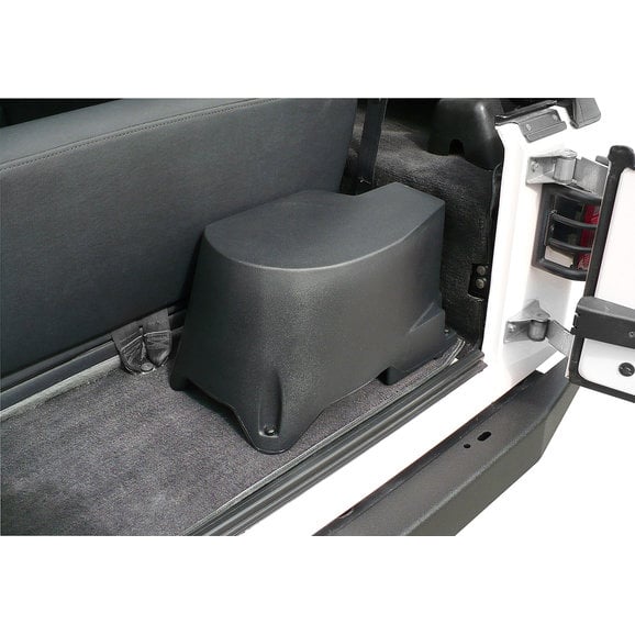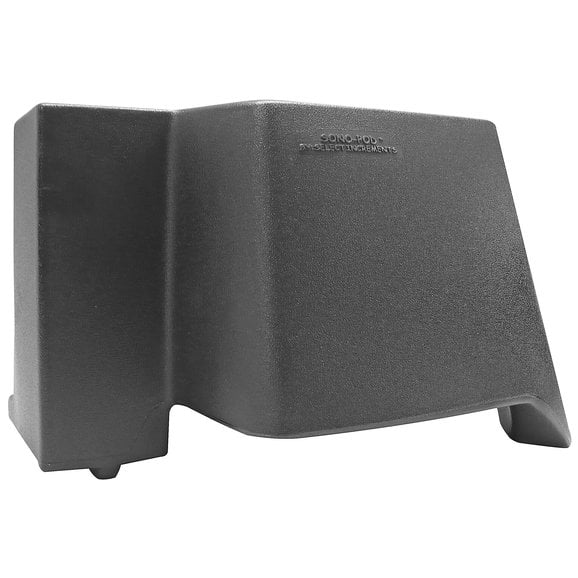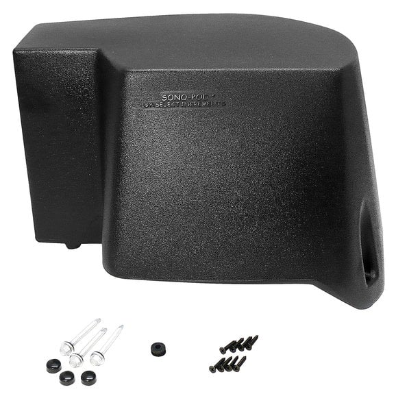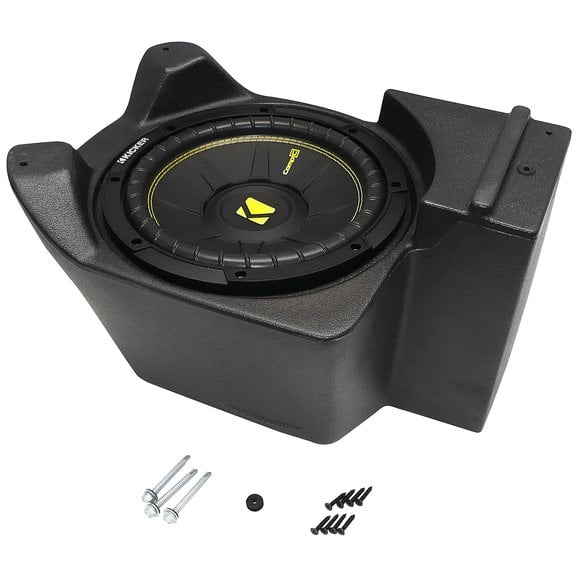 Bring your music to life and fill in that low-end audio void! The Sono-Pod™ houses a 10” subwoofer, provides a factory look and mounts in the cargo area of 1976-2006 CJ7, YJ and TJ Wranglers. The Sono-Pod is just under 11” tall, designed to fit under security shelves and insta-trunks as well as maintain some cargo space. The pod operates as a sealed enclosure with an internal volume of .73 cubic feet and has a subwoofer mounting depth of up to 8”. The subwoofer fires downward, hovering just above the floor to maximize bass output and offer protection from the elements. The concealed wire-lead hole is located on the underside of the pod nearer to the wheel-well. The textured plastic walls of the Sono-Pod are .25” thick making it incredibly sturdy and nullifying vibration. The pod is secured to the floor with special self-drilling screws and black screw caps complete the look. Offered empty to add your own audio components, or with Kicker® audio components included.