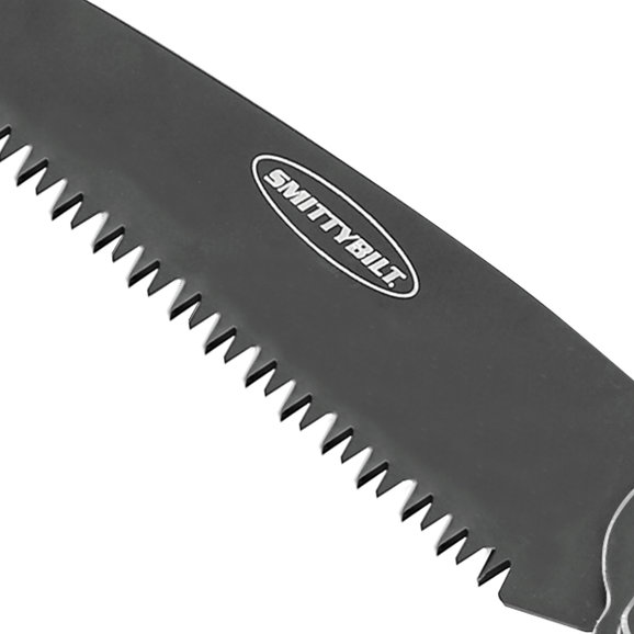 The non-slip handle allows for a secure grip while you are sawing, while the blade safety features auto lock for a secure open or closed blade. Easily stores in a 600 denier pouch that has roll bar attachment points this saw is a must have for every Jeep enthusiast!