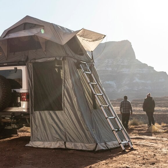 Expand your rooftop tent setup with the Smittybilt GEN 2 Overland Annex, a versatile enclosure that adds space, privacy, and weather protection to your overlanding campsite. Designed to pair seamlessly with the Smittybilt GEN 2 Overlander Tent, this annex creates a fully enclosed ground-level room that’s perfect for changing clothes, storing gear, or using as a sheltered entry. Made from durable 600D ripstop polyester with a waterproof coating, it stands up to rain, wind, and sun. The zippered door and windows provide ventilation and easy access, while the no-hassle attachment system makes setup quick and intuitive. Whether you're adding a changing area or extra sleeping space, the Overland Annex turns your tent setup into a full-featured basecamp.