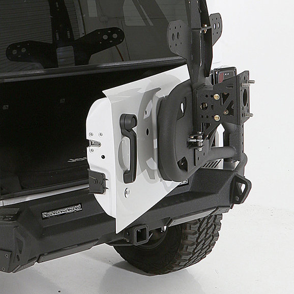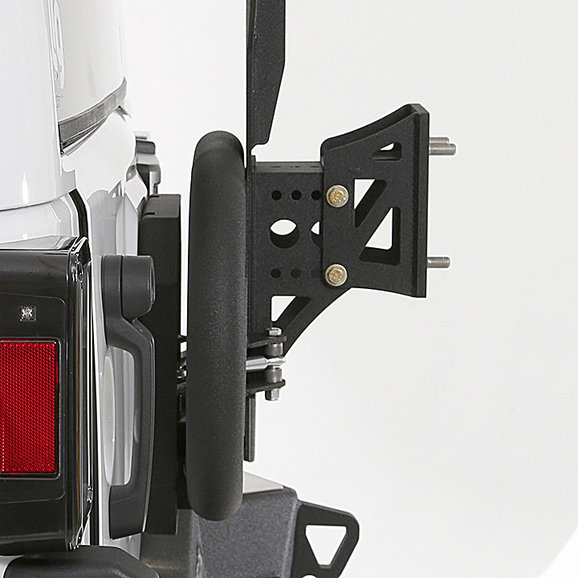 The Gen2 Bolt On Tire Carrier offers the same rugged construction as the Smittybilt SRC bumpers. Single handed opening operation allows for quick & easy access to the back of your Jeep. This bolt on tire carrier is designed to fit the Smittybilt SRC Gen2 line of bumpers as well as 10th Anniversary Jeep bumpers. With key features including a frame mount pivot point, Roto Pax® gas/water can mount, CB/Jack mount and Bottle Opener this tire carrier has everything needed for the trail.
