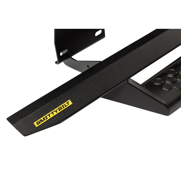 The Smittybilt JAngular Drop Steps are designed to enhance the functionality and appearance of your Jeep Gladiator JT. These steps feature a durable textured black finish that resists wear and tear, ensuring long-lasting performance. The angular design provides a clean and rugged look, complementing the vehicle's style. With a large stepping area at every door, these steps offer practicality for lifted vehicles, making entry and exit effortless. Installation is quick and straightforward, and the product is backed by Smittybilt's industry-leading Limited Lifetime Structural Warranty and 5 Year Finish Warranty. Choose these drop steps for a combination of style, durability, and convenience.