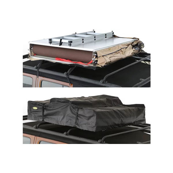 Ladder & Rails: This systems comes with a Dual aluminum track for universal installation using U-clamps. An 18" wide telescopic aluminum ladder system makes getting in and out of your tent a a breeze.