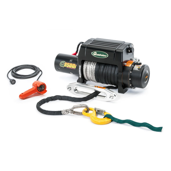 Quadratec's legendary Q-Series Winches are now available with Dyneema® winch line; an ultra high molecular weight polyethylene fiber developed in the Netherlands over 20 years ago. All Quadratec Winches are manufactured in our state of the art ISO 9001 factory and are CE certified for our international customers. Synthetic winch lines are a real game changer in off road recovery. Despite being softer and flexible, Dyneema® is stronger and more durable than winch steel cables. In fact, when properly cared for, Dyneema® winch lines will outlast steel winch cables. Weight for weight, Dyneema® is 15 times stronger than steel and its light weight significantly improves the ease of handling. It even floats and is an obvious benefit when winching in water conditions. Dyneema® will not rust, kink and lose strength like steel cables. Handling steel cables can sometimes result in wire splinters but synthetic winch lines are much safer and easier to use. In the unlikely event of a synthetic winch line break, there is virtually no recoil, unlike steel wire where recoil is extremely dangerous. The ease of handling, increased safety and improved longevity of Dyneema® are why so many off road enthusiasts are making the switch. Each Synthetic Series Winch features 90' of Synthetic winch line with a 12' ballistic nylon chafe guard to protect your winch line from abrasions. Each winch line is 3/8" diameter and rated for 18,000 lbs. Other features include a billet aluminum hawse fairlead, deluxe winch hook and Winch Operator's Guide which includes helpful information on winching and the care and use of synthetic line.