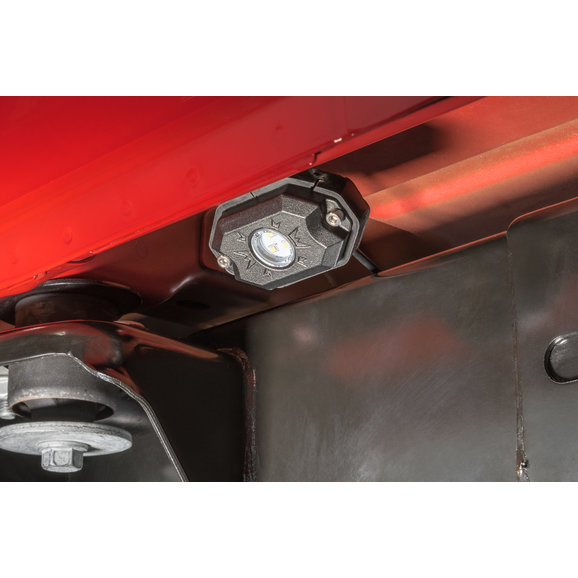 Easily add extra illumination to your Wrangler JK with the Automatic Undercarriage LED Courtesy Lamp Kit. The lights are designed to automatically turn on and off with the opening and closing of the doors, as well as turn on when the remote door locks button is pressed.The undercarriage light kit operates using a unique control module that is synced to the interior courtesy lights and the built in trigger wire. This complete set of 2 LED lights mount to the undercarriage of the vehicle and will provide a 120° flood beam pattern that adds a soft non-glaring pool of light. Each LED pod features 3 individual CREE chips that are IP68 waterproof rated. The lights mount to the vehicle with the included stainless steel brackets that require no drilling or modifications to the Jeep. All necessary wiring and hardware is included for an easy do it yourself upgrade that can be done with standard tools. Three Year Limited Warranty is included.