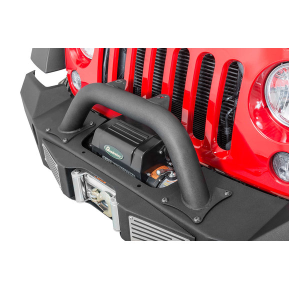 The Smittybilt XRC Atlas Front Bumper for Wrangler JK Vehicles features an innovative 4 piece design with recessed winch mount allowing greater air flow through the grille. This stylish new bumper accepts factory fog light housings and offers solid D-Ring mounts and Bolt-on Skid Plate. The removable bull bar offers two mounts for auxiliary lighting. Constructed of 3/16 cold rolled steel for maximum strength and designed for improved approach and departure angles off-road. 2 stage textured