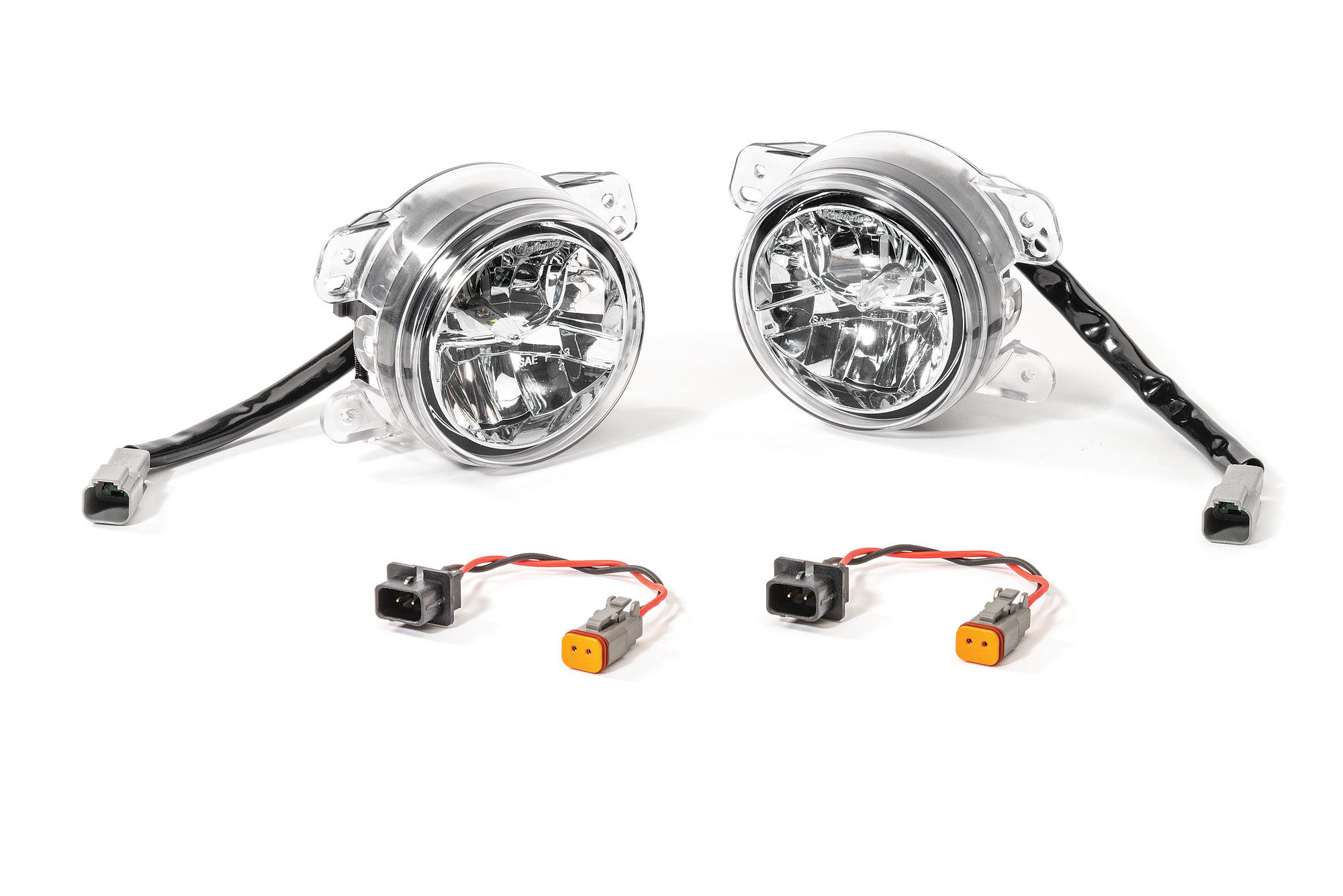 Enjoy the experience of an improved fog light pattern with a clearer beam cutoff and brighter output. Replace those dim factory incandescent fog lamps with a Quadratec LED upgrade. Features a solid state maintenance free design with advanced photometric technology for a crisper and whiter light output that's closer to the color temperature of actual daylight. Guaranteed to deliver dramatic improvements or your money back! Lenses have a distinct customized appearance while bringing function and styling to a higher level. The rugged body construction features die-cast aluminum housings with crystal clear impact resistant polycarbonate lenses and beam height adjustment screws. The solid state electronics and powerful LEDs are protected by water tight seals. These drop-in replacements are truly plug-n-play requiring no modifications and installation takes only 20-30 minutes and uses the existing factory steering column switch to operate. Each lamp aims 2 high powered LEDs at a computer designed muti-surface reflector that disperses the light into a distinct and optimized fog beam pattern. Our exclusive design installs in place of the factory lamps using the existing mounting hardware. Once installed you'll immediately appreciate a whiter, crisper light that provides greater visibility when driving in foul weather. Our lamps meet DOT and SAE federal motor vehicle safety standards and are approved for highway use in all 50 states and come with Quadratec's 3 Year Limited Warranty. Sold in Pairs. Not compatible with 10th Anniversary or Hardrock Steel Front Bumpers.