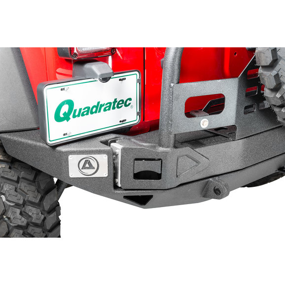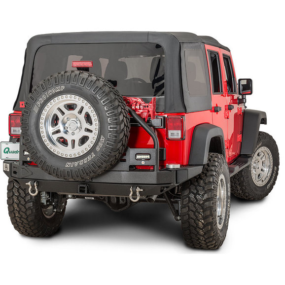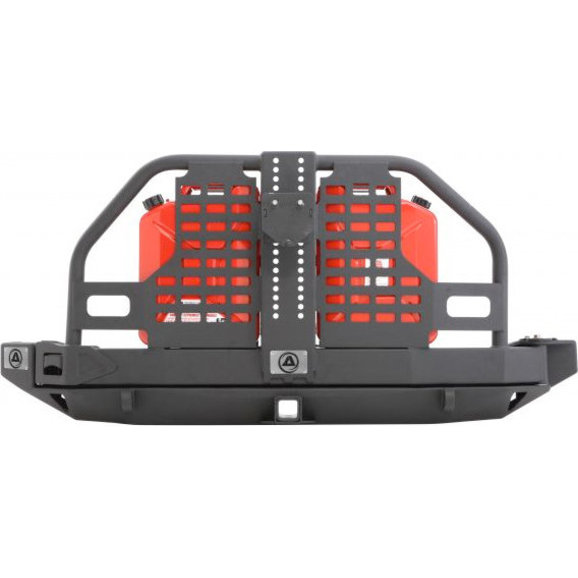 XRC Rear Atlas Bumper and Tire Carrier: with this rear bumper & tire carrier you are getting a beefy looking bumper that will accommodate up to a 37" tire that utilizes a new cam-style pin adjustment for ensuring perfect gate stowing every time. Manufactured from 3/16" cold rolled steel, this bumper features solid D-Ring mounts, Stainless Steel Pivot Washer with Billet Cover, Recessed Jack Points, Integrated Class III 2" Receiver, Integrated Can Mounts, Third Brake Light Bracket and CB antenna mounting tab. 2 stage textured matte black powder-coat finish. 5 year warranty on finish and Lifetime Structural.