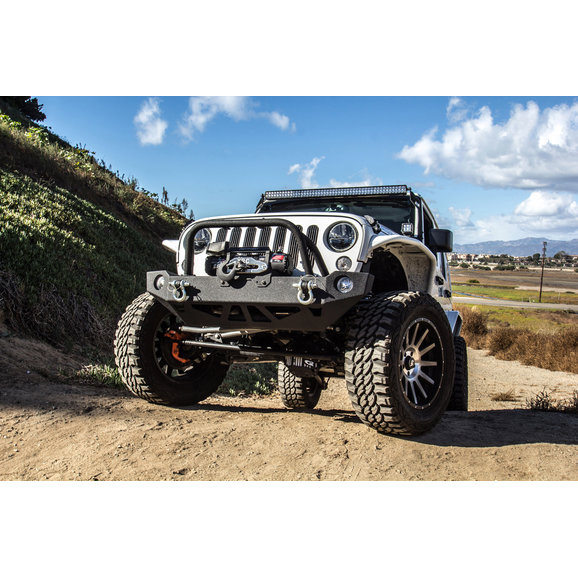 The Smittybilt SRC Carbine Bumper proves that rugged protection can help keep your Jeep safe from trail or street abuse no matter what your budget. This stylish bumper offers a two-stage matte black finish that isn’t just icing, as it is constructed with 3/16” cold-rolled steel for added durability. The SRC Carbine Bumper is also adaptable and designed to accommodate a variety of winches up to 12,000 lbs. An attached fairlead bracket allows for front license plates to be mounted when required. Another feature allowing for versatility is the 1.75” removable override bar that offers two light mount tabs. This option provides the choice of either aftermarket or factory fog lights. The bumper also works with standard ¾” D-rings on its sturdy mounting points, helping provide needed recovery points. Limited lifetime warranty.