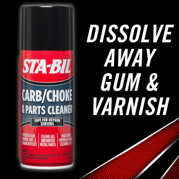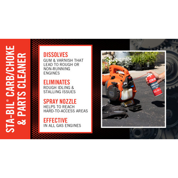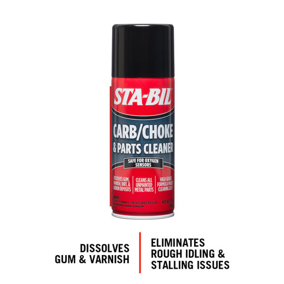 STA-BIL Carburetor and Choke Cleaner is formulated to dissolve gum and varnish, dirt, and carbon deposits. Once clean, the engine will start easier and run smoother. It has a convenient spray nozzle, which comes with a direction tube to reach hard-to-access areas. This product helps to restore lost mileage and performance. It comes in a convenient 12-ounce aerosol can.