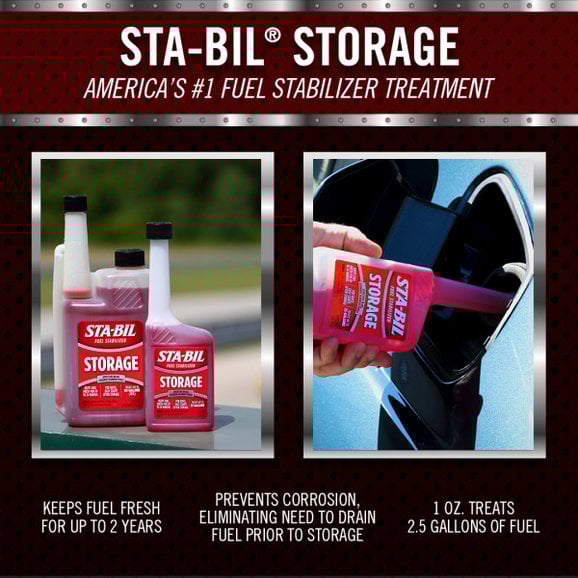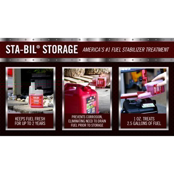 Keeps Fuel Fresh: STA-BIL Storage keeps gas fresh for up to 24 months. This eliminates the need to drain fuel before storing your equipment and ensures quick easy starts the next time you go to fire it up.