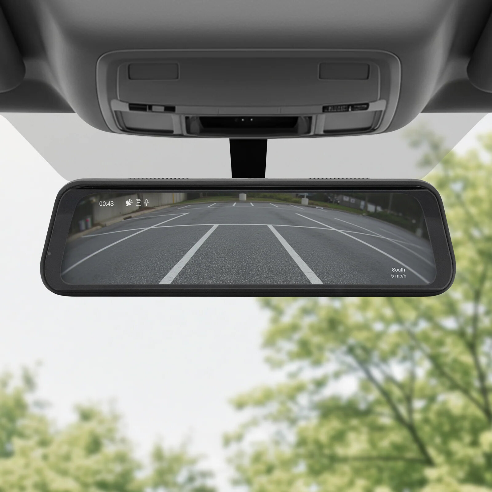 Large 9.66″ Mirror Monitor: Offers an expanded view area with optional split-screen mode for front/rear views.