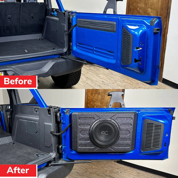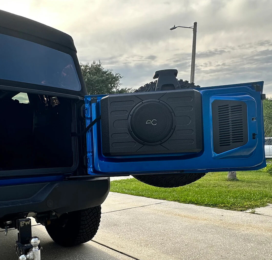 Space-Saving Swing-Gate Design: Mounts to your Bronco’s tailgate, freeing up floor space while adding bass.
