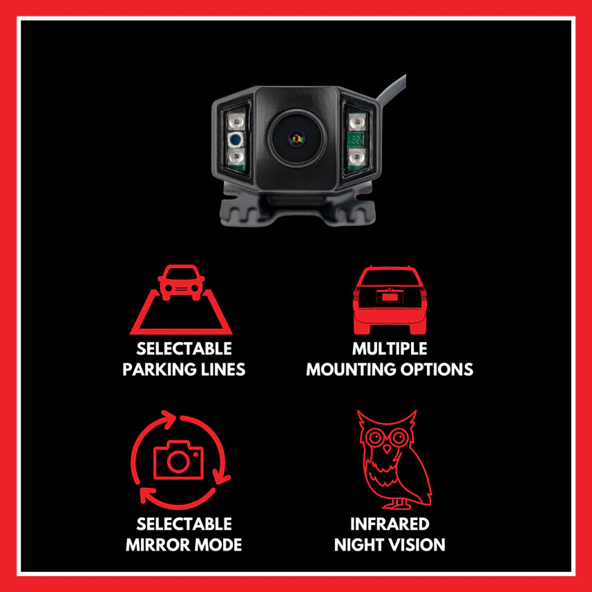 Flexible Mounting Options: Works as a front or rear camera and includes hardware to adapt to license plate, tailgate, or bumper mounts