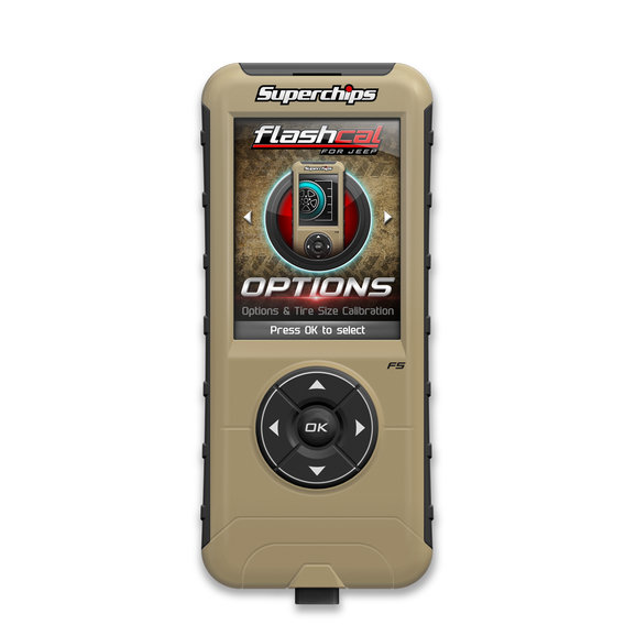 The Superchips Flashcal F5 Programmer is a plug in module that is easy to use and a perfect way to address speedometer issues without breaking the bank. The Flashcal F5 Programmer is expertly designed to, among other things, accurately correct your speedometer following tire upgrades between 26” - 42”, as well as for gear/axle swaps up to 5.38. In addition, this Flashcal will adjust your engine idle for winching, sound the horn and flash exterior lighting on Keyless Locking, provide a daytime running light option and one touch lane change, read and clear diagnostic trouble codes, and can toggle your tires' TPMS on/off - all from a high-definition 2.8" color screen. Plus, the Flashcal F5 software is easily upgradable to the latest version and includes a USB cable to connect to any Windows-based computer. This application is designed to work on any JK Wrangler, however some features may only work on 2011-17 versions.