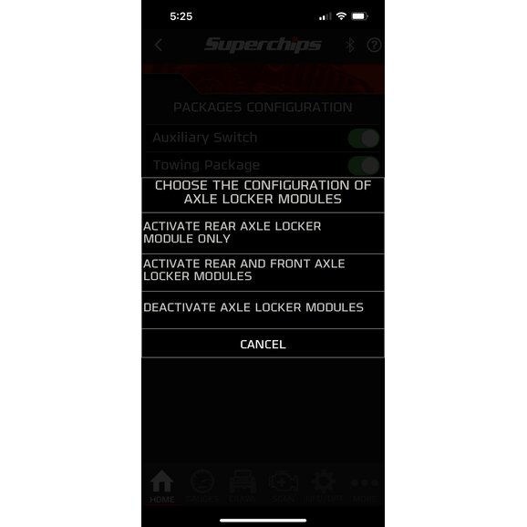 - Axle Lock Rear OR Front and Rear w/ T-case in 4-Hi & 4-Low (CRAWL Screen, Rubicon Only)