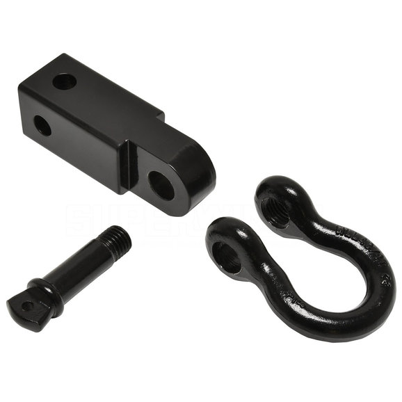 The Superwinch Receiver Shackle Bracket Includes a 3/4" bow with 7/8" pin shackle and fits into any 2" Class III/IV Hitch receiver rated at 10,000 pounds. This receiver shackle bracket can be mounted horizontally or vertically and can be connected to a tow strap for a recovery anchor point.
