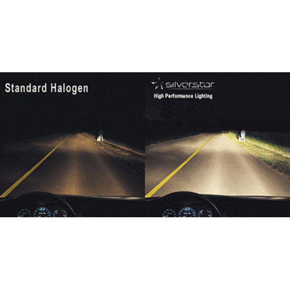 The look of HID is here. There's a new star on the road, burning 20% brighter and whiter than standard halogen. SilverStar illuminates with a searing intensity, exceeded only by the more expensive High Intensity Discharge lighting. SilverStars are the brightest street-legal halogen on the road. Burning cleaner & crisper, SilverStars bring an entirely new nighttime driving experience that is safer and less fatiguing. SilverStar Lamps Feature a 4000-degree color temperature rating with 55 and 65 high and low beam wattages.