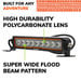 Waterproof Rating: Rugged aluminum body designed for optimal heat removal, handles rough off-road environments and resists corrosion. Impact resistant polycarbonate lens. IP69K rated waterproof up to 3 feet for 30 minutes.