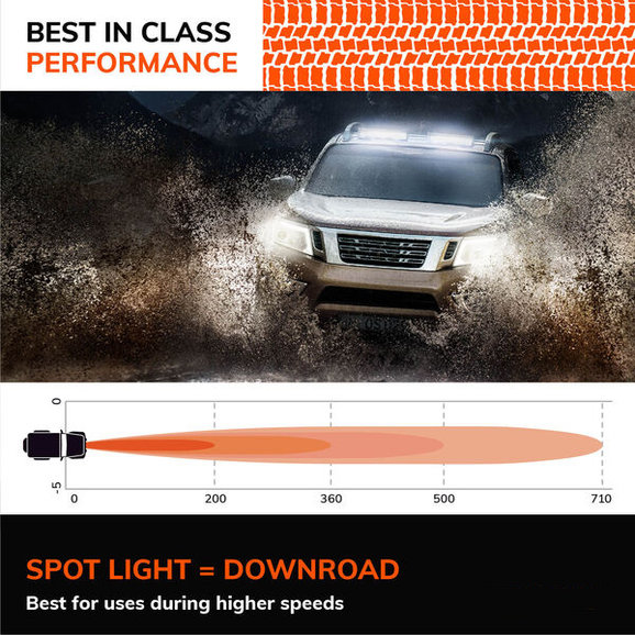 Performance + Style: Designed to maximize down road visibility. Spot beam patterns are best for higher speed applications that benefit from increased down road visibility.