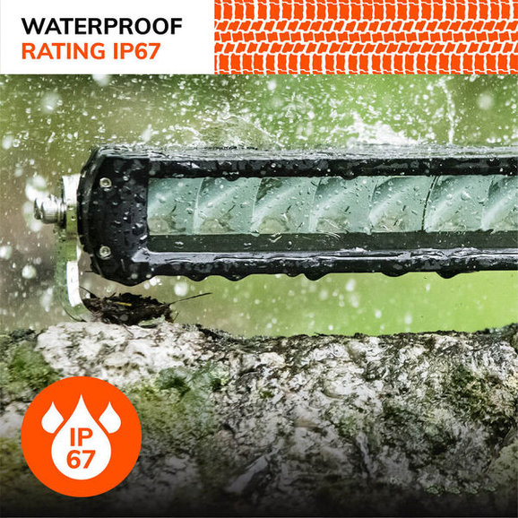Waterproof Rating: Rugged aluminum body designed for optimal heat removal, handles rough off-road environments and resists corrosion. Impact resistant polycarbonate lens. IP69K rated waterproof up to 3 feet for 30 minutes.