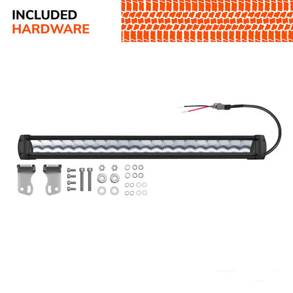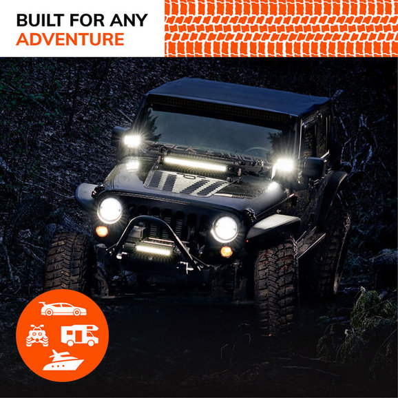 The SYLVANIA Ultra LED Off-Road Light Bar with Spot Beam boasts a bright white beam pattern, pushing light onto the trail and woods around you. When your vehicle lighting isn't giving you enough light this bright, spot beam light uses world-renowned OSRAM high power LEDs to produce an extremely high light output. The light bar is available in a 10" version that has a 5-degree angle and produces an extremely high light output of 2,500 effective lumens and a 20" version that produces an output of 5,000 effective lumens so you can see better. SYLVANIA'S cooling fans are world-class, with deep fins to dissipate heat easily and allow for extremely long-lasting LEDs. The compact dimensions allow for this LED light bar to be mounted where you want. Shock and vibration proof, the SYLVANIA Ultra Spot LED light bar is perfect for any adventure.