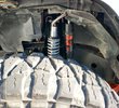 Recommend 2” x 12” travel coil over shock giving an effective 4” tall bump stop spacer. 14” travel shocks can be used but you will loose 2” of up travel. It is also recommend to use secondary suspension bumpstops. A foam bumpstop can be added to the shock shaft for a simple installation or you can upgrade to the Synergy Mfg air bump mounting kit that works in conjunction with these brackets.